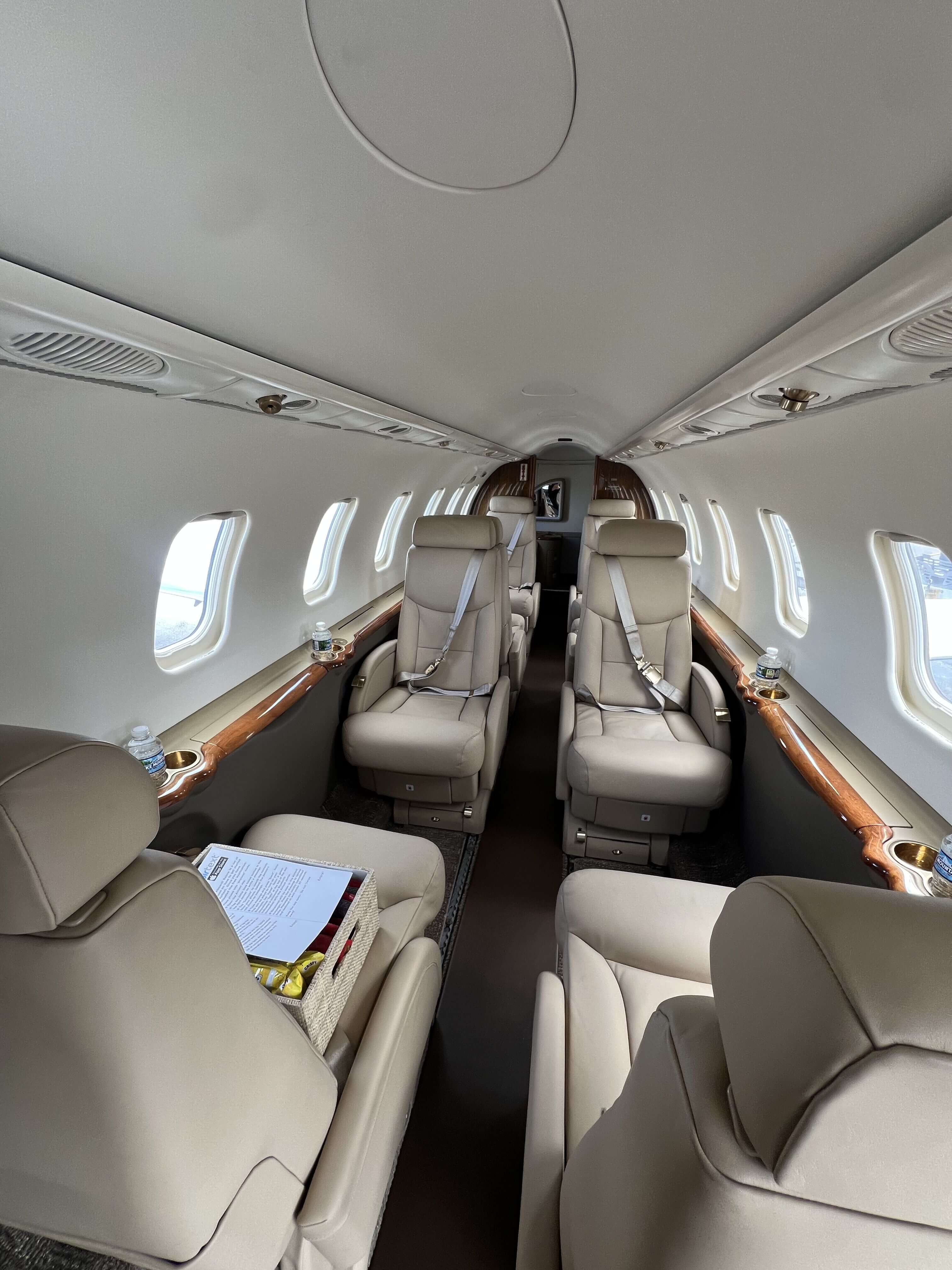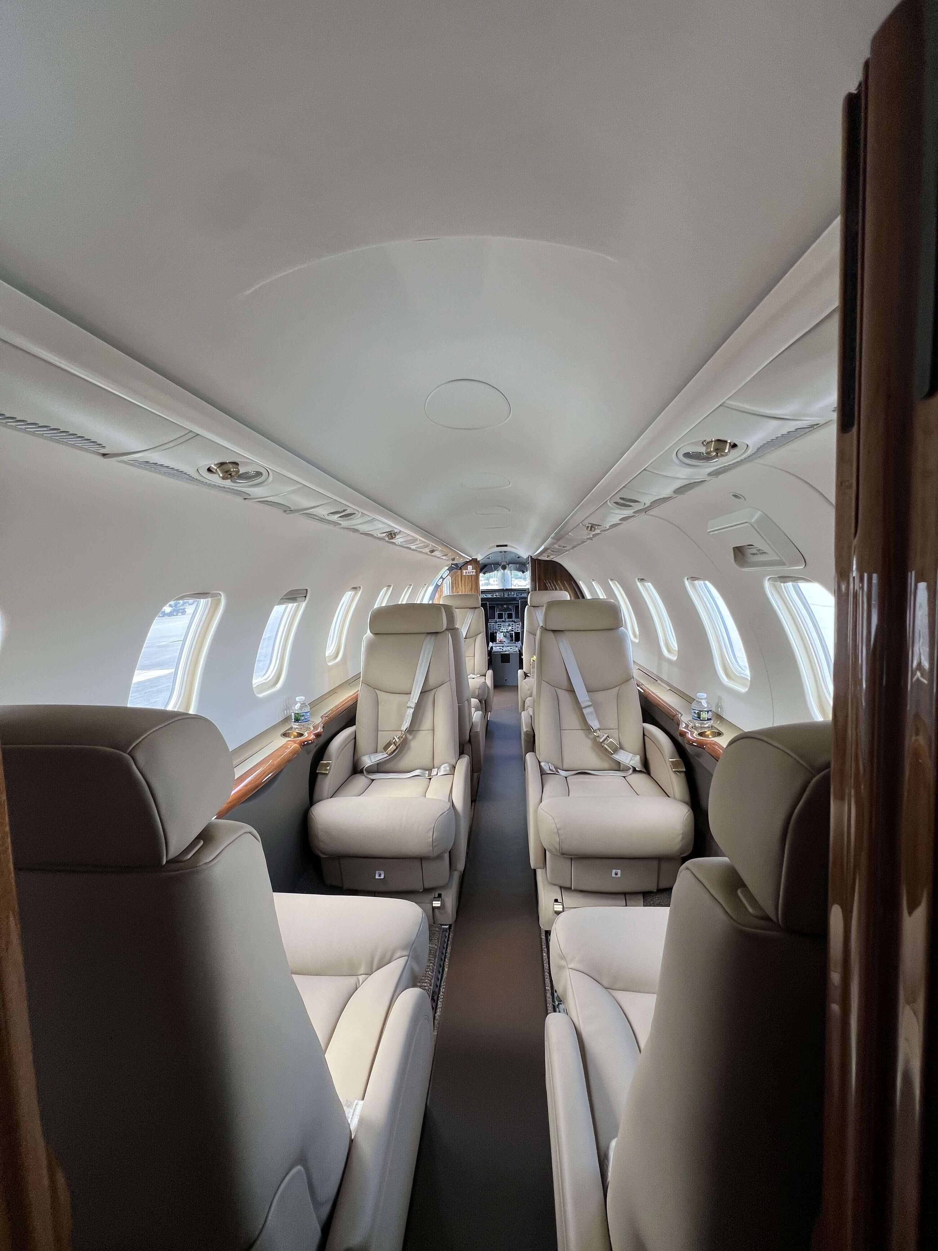 Midsize Jet | 8–9 | ~2,000 nautical miles | ~465 knots | 51,000 ft | Larger cabin and better range than 40XR; popular for business travel. |