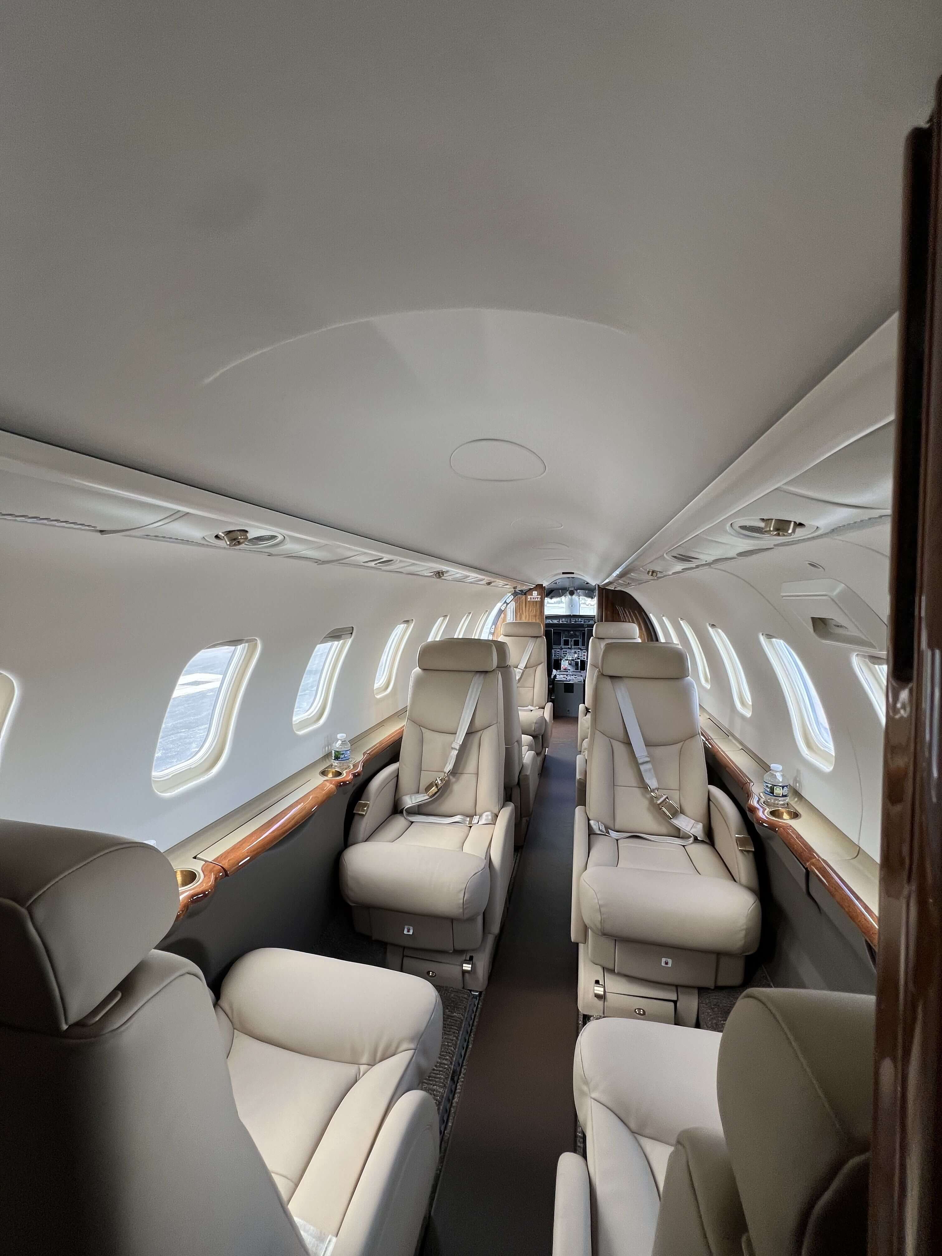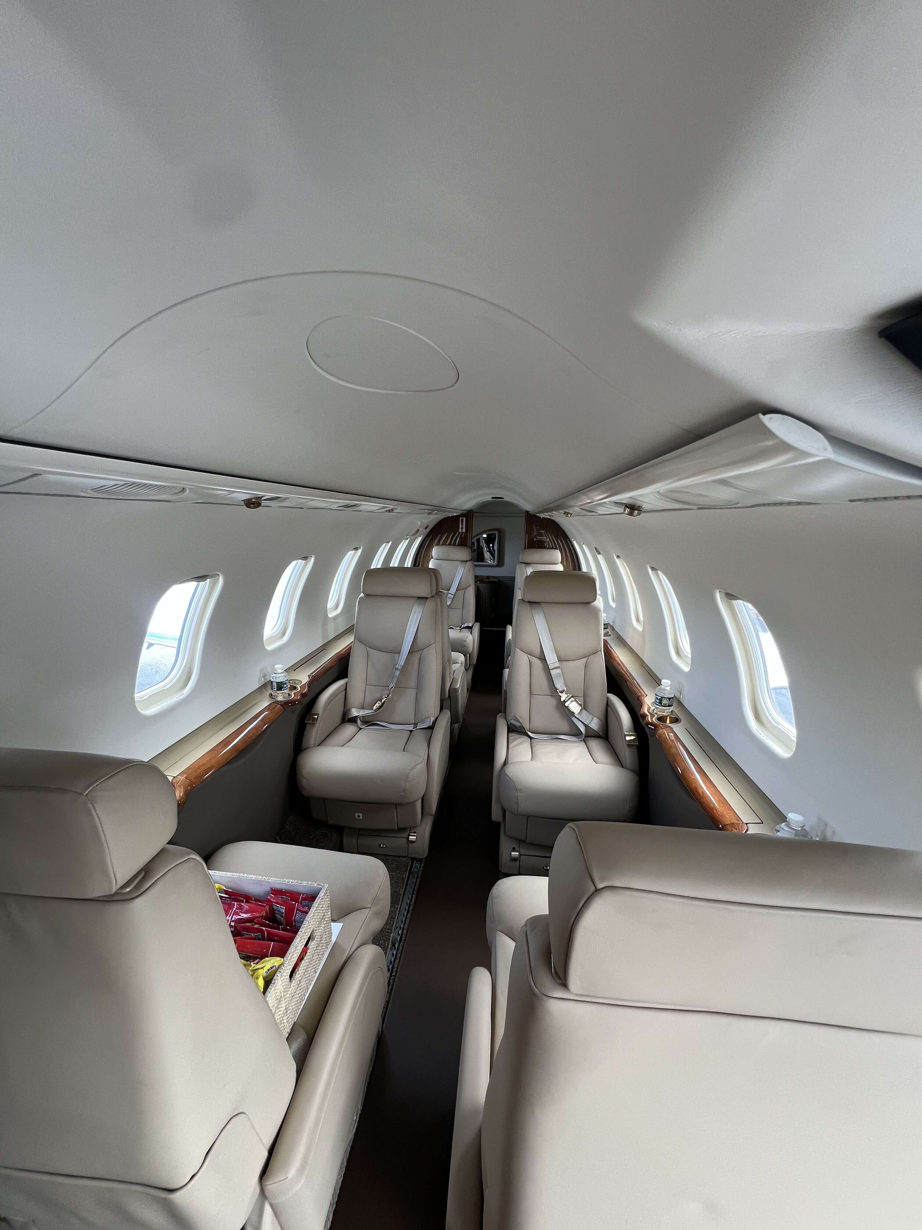 The aircraft features a spacious, double-club seating configuration for up to 8 passengers, a flat-floor cabin, and an enclosed lavatory. Known for its reliability, performance, and cost-efficiency, the Learjet 45 is a favorite among corporate operators and charter providers.